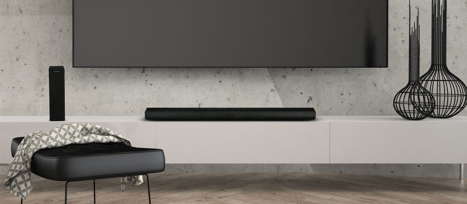 The biggest drawback of modern, slim televisions is the weak, tinny sound quality you tend to get from their small built-in speakers. A soundbar is a slim unit with multiple built-in speakers designed to dramatically improve TV sound without requiring loads of wires.