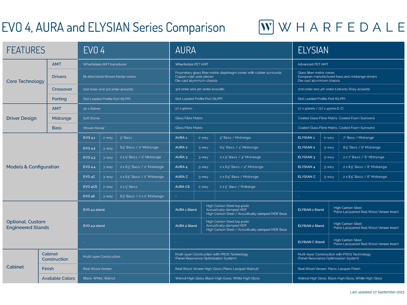 See how the ground-breaking Wharfedale product series compares, from EVO4 through AURA to ELYSIAN.