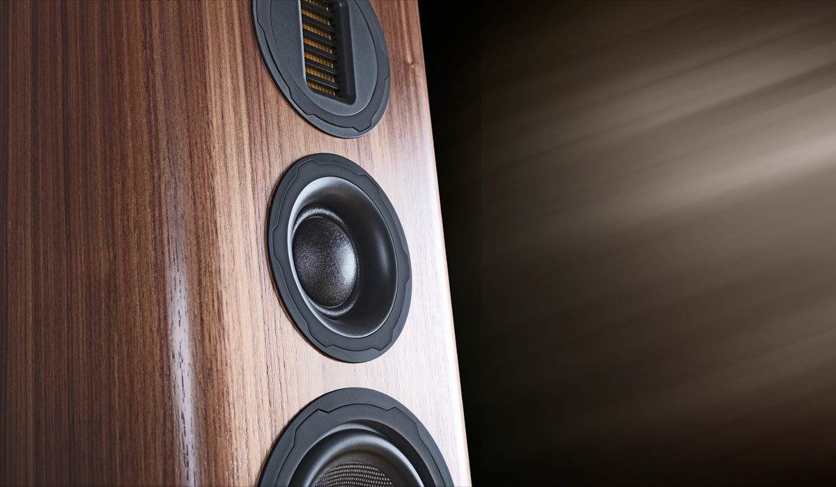 Thanks to its high-flux magnet, the EVO 5 midrange dome’s efficiency is well matched to that of the AMT treble unit, enabling it to respond rapidly to the dynamics of the music. The wide dispersion of this dome and AMT combination ensures that listeners hear all the musical detail, no matter where they are seated, putting them right at the heart of the music.