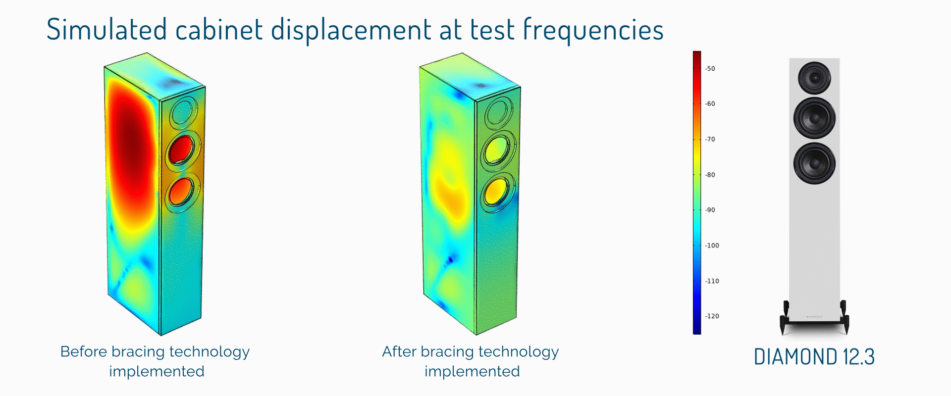 Inside the cabinet, Intelligent Spot Bracing connects opposite walls with a specific form of the wood brace to achieve an optimal reduction of cabinet resonance. These braces are precisely modelled by computer simulation to improve upon the commonplace ‘figure of eight’ brace, which may simply transfer resonance from one wall to another.