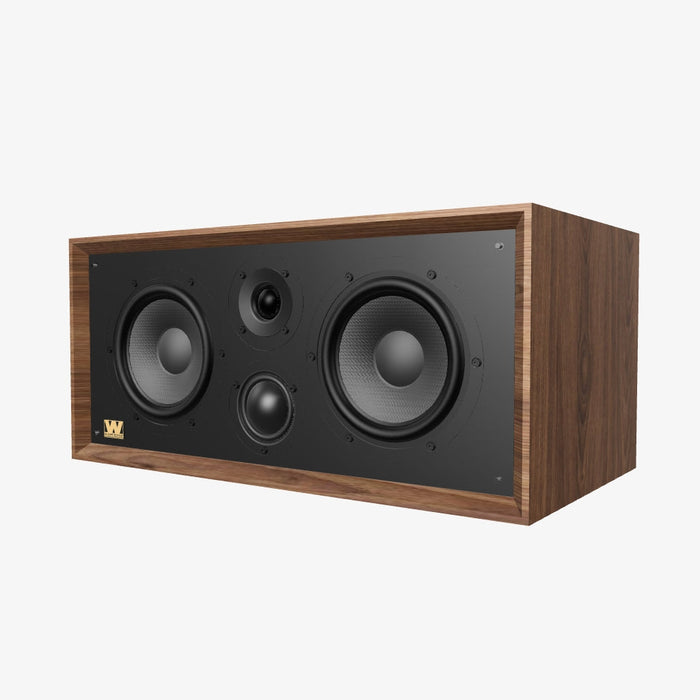 Available in the same real-wood veneer finishes — Black Oak, Mahogany, and Walnut — with a matching black baffle, classic cloth grille, and the signature Wharfedale badge, every element has been carefully considered to ensure visual continuity within a Heritage system, allowing the centre speaker to sit naturally alongside its companions.