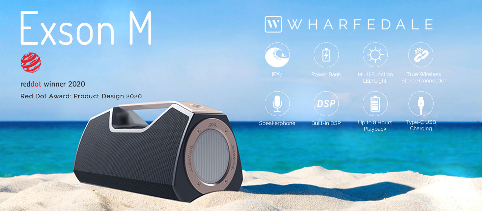 Wharfedale Exson M is the ultimate versatile portable Bluetooth speaker for the active lifestyle.