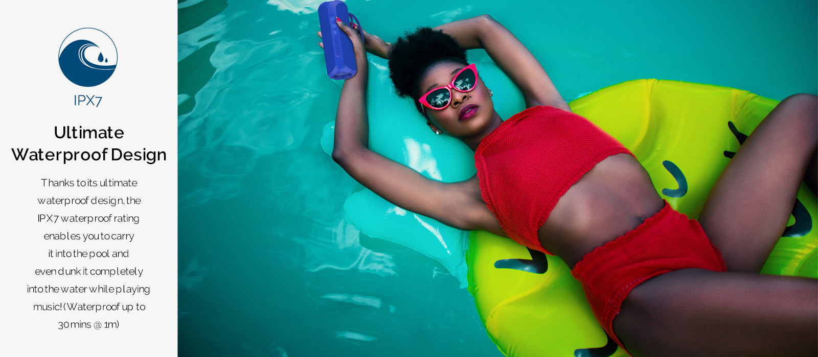 Waterproof IPX7 (up to 30 mins - 1 meter)