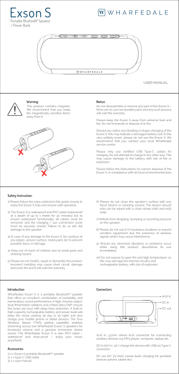 Wharfedale Exson S is a portable Bluetooth speaker that offers an excellent combination of portability and tremendous sound performance. A high-volume output, dual Wharfedale radiators and a Maxx Bass DSP, ensure the tunes are loud with deep bass extension.